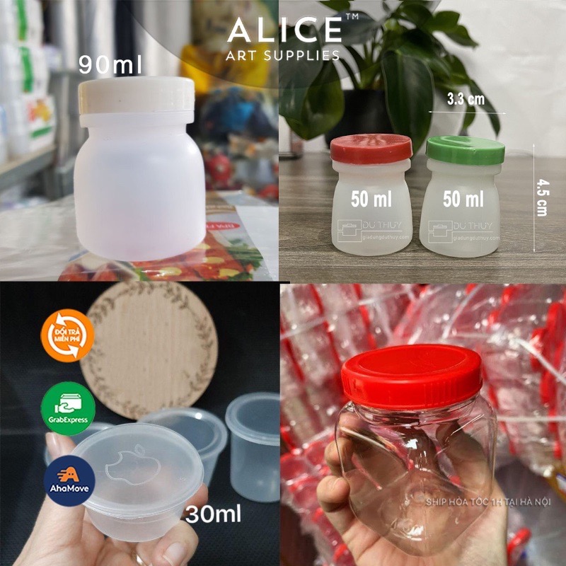 Hộp nhựa nhỏ để đựng màu bột, có nắp đậy màu trong ~ 30ml, 50ml, 90ml, 100ml NEW