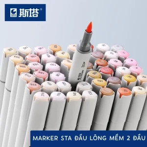 Marker Bút dạ hai đầu STA mã 3212BR bộ 12, 24, 36, 48 màu đầu brush lông mềm và đầu vát chéo vẽ ký họa, truyện tranh
