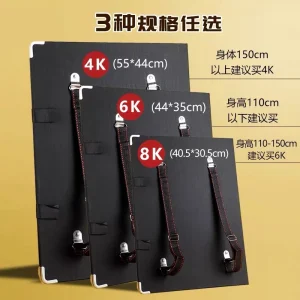 Dùng để kê giấy vẽ. Có quai đeo, thuận tiện mang theo. Kèm 2 kẹp giấy 41mm.