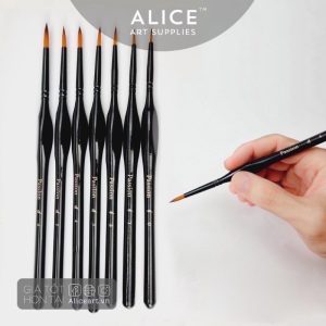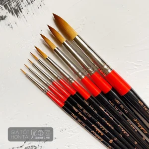 Dùng cho màu nước, acrylic, sơn dầu và ngành nail. Ngậm và giữ nước vượt trội nhờ sợi lông tổng hợp thế hệ 2; thân gỗ sơn PU chống thấm, chống phai màu. Lưu ý: Ngâm nước ấm 30 giây trước khi dùng lần đầu để rã keo.