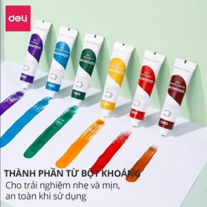 Màu sơn Acrylic Deli bộ 24 màu tuýp 12ml vẽ vải, gỗ, kim loại, đa năng Rẻ