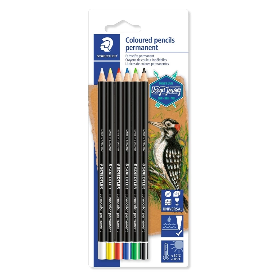 Bộ 6 màu chì đa năng Staedtler Đức – Colored Permanent Pencils – Được mài sẵn, hoàn hảo cho giấy sáng và tối