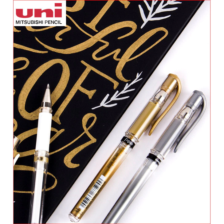 Bút gel vẽ cao cấp UNI-BALL SIGNO ngòi 1mm nhiều màu trắng, nhũ bạc silver, nhũ vàng gold PIGMENT INK