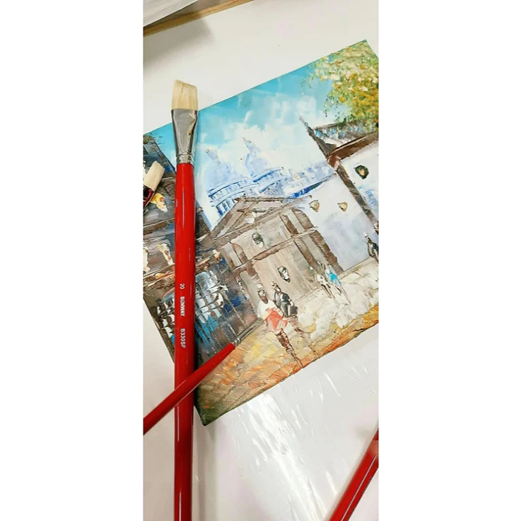 Chuyên dùng cho màu sơn dầu, acrylic. Được làm từ lông heo tự nhiên, có độ cứng nhất định.