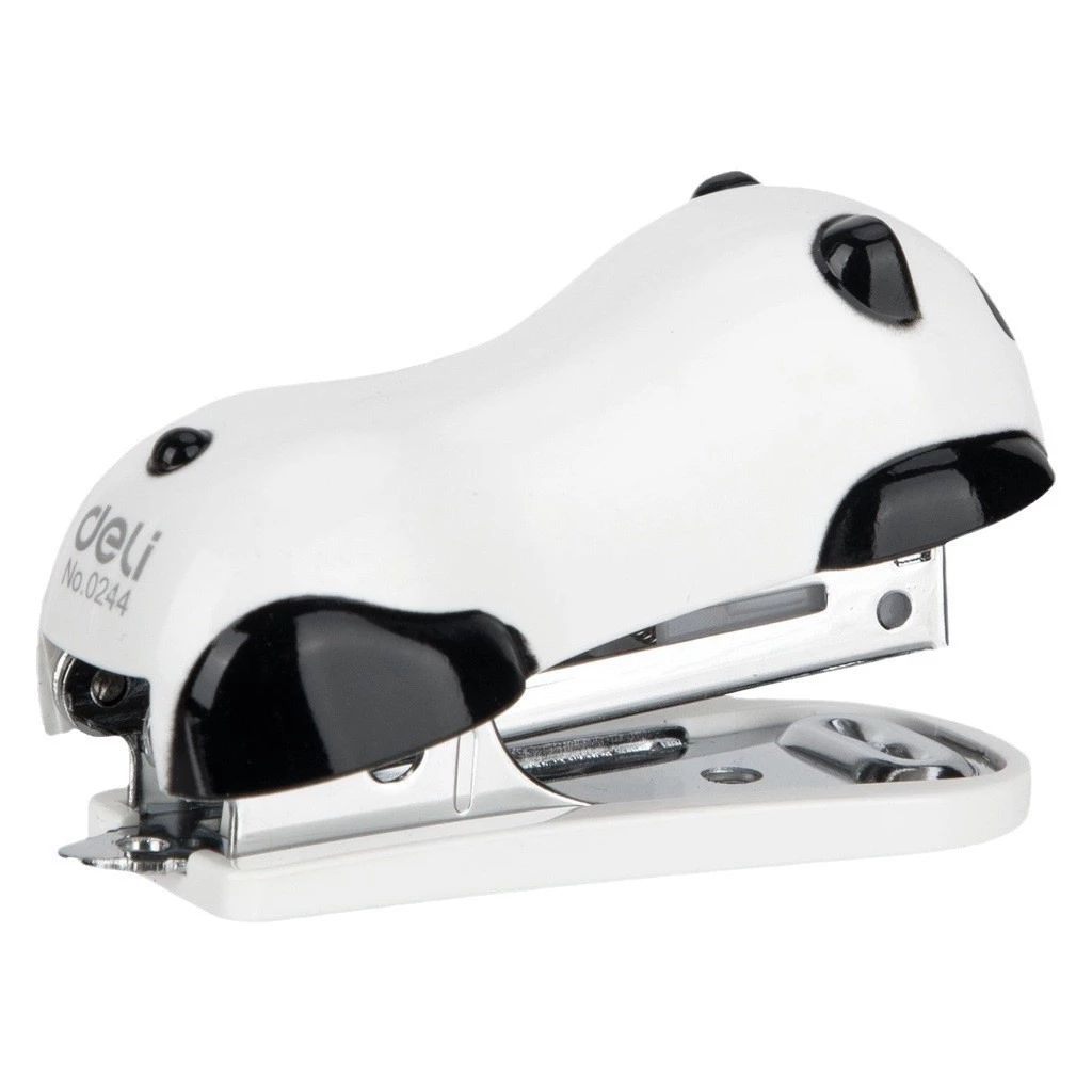 Dập ghim Deli mini hình gấu trúc Panda, bấm tới 15 trang cho giấy học sinh văn phòng kèm hộp ghim 1000 cái stapler 0453