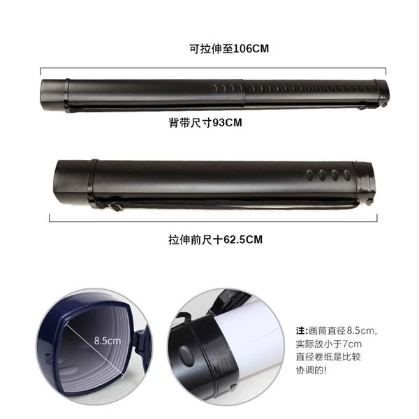 -Kích thước : Ống đựng giấy vẽ có chiều dài cơ sở là 62cm và 106cm khi được kéo max