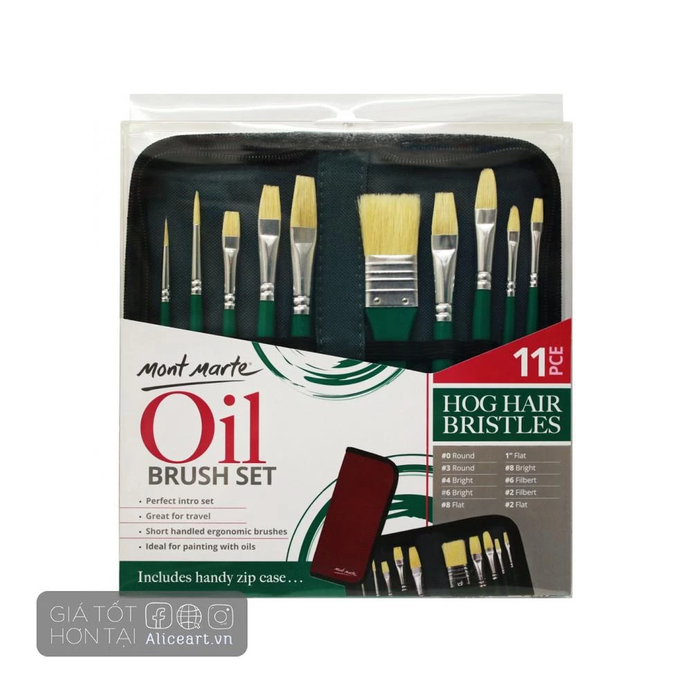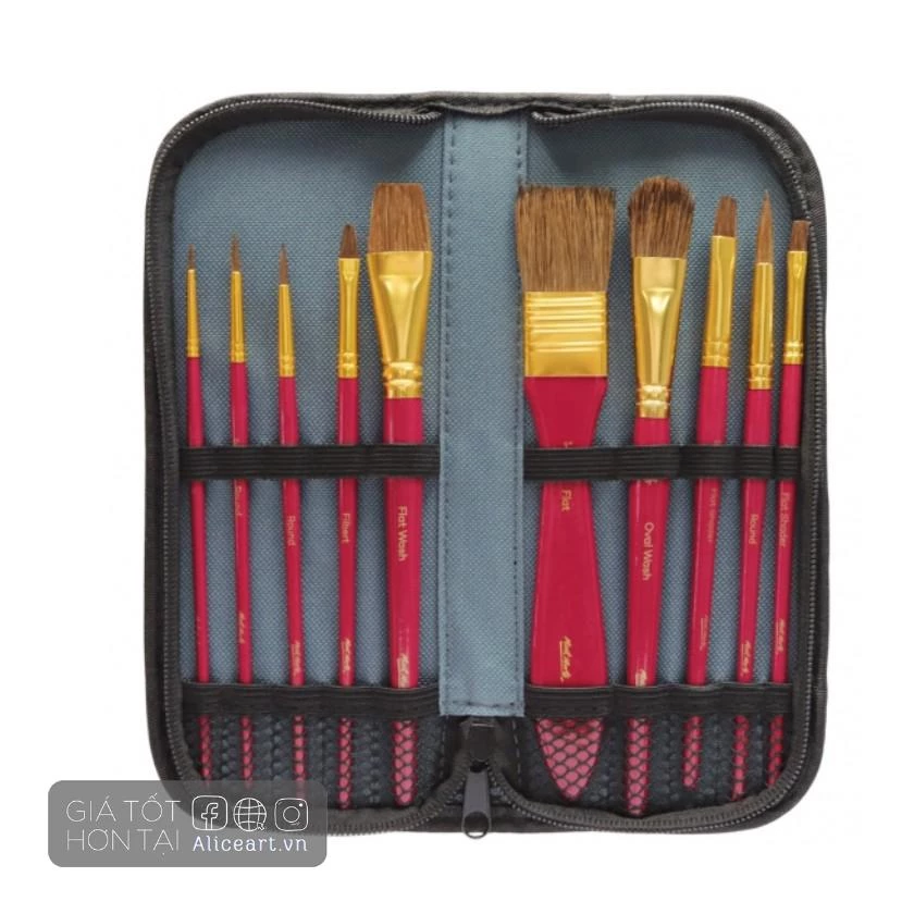 SET CỌ KÈM TÚI VẢI – VÍ MONT MARTE ĐỂ VẼ MÀU NƯỚC, SƠN DẦU, ACRYLIC ( 11 CÂY ) NEW