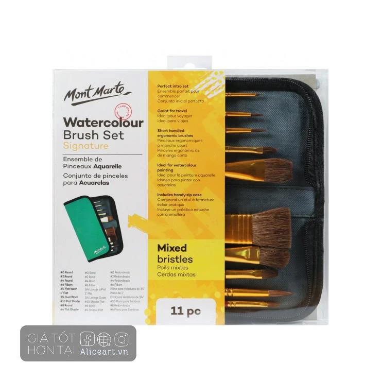 Bộ cọ màu nước Mont Marte là một lựa chọn tuyệt đẹp gồm các loại cọ lông tự nhiên, lý tưởng cho các dự án màu nước. Hộp đựng có khóa kéo tiện dụng là lựa chọn hoàn hảo cho những chuyến du lịch và giúp kéo dài tuổi thọ cho bàn chải của bạn.