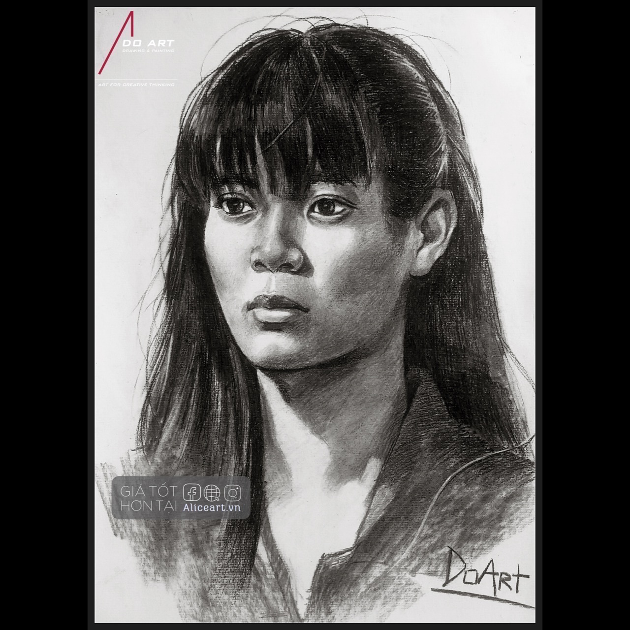 Ví dụ bên dưới: Vẽ chân dung cô gái